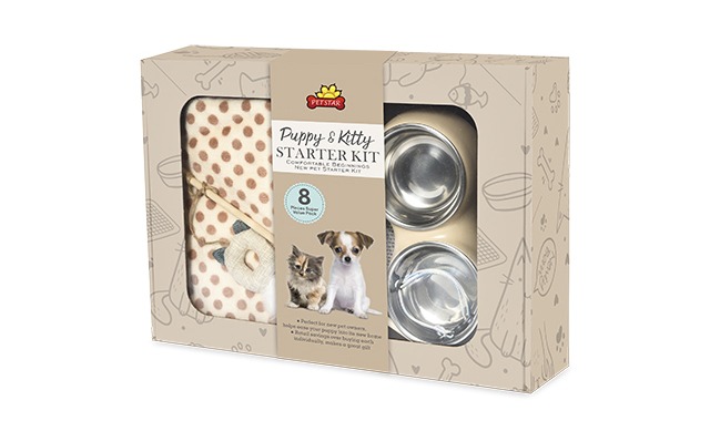 新生小貓套裝共九件:包含貓砂盆,貓砂鏟,瓦楞抓板,毯子,逗貓棒,頸鏈,按摩梳,指甲剪,雙碗,各種幼貓需要的用品,旨在提供舒適感并緩解小家伙的焦慮,盡快融入新家庭。